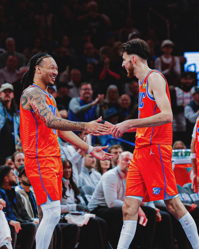 同时,霍姆格伦场均干扰篮下出手4.8次,限制对手命中率50.5%,护筐效率联盟第八,雷霆是联盟唯一拥有两位护筐效率前十球员的球队。